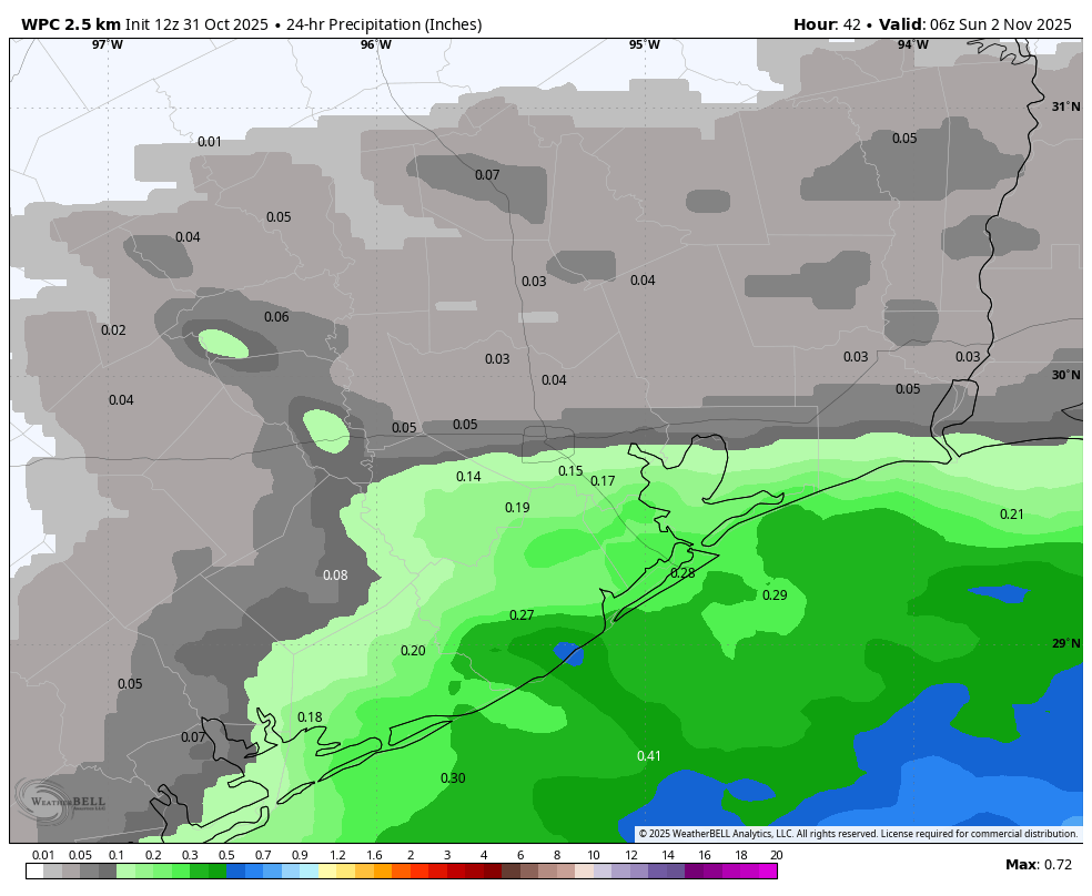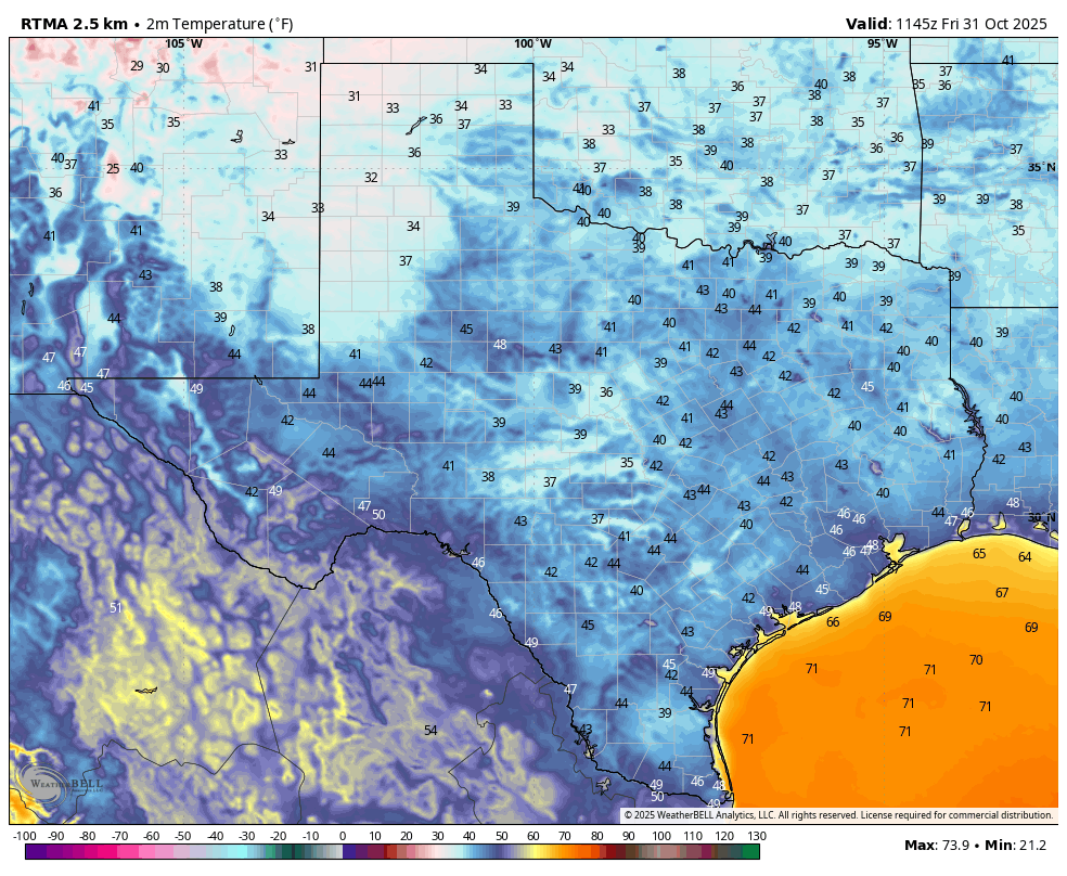 I have been writing about the weather in Houston for more than two decades. Almost every year on Halloween there is some concern, be it the potential for rain, or humidity, or winds, or something. This year, we have absolutely zero concerns. Temperatures near sunset? Mild, in the upper 60s. Skies? Clear. Winds? Light, maybe 5 mph from the north. Humidity? Haha, there will be none. Seriously, enjoy the very fine evening.