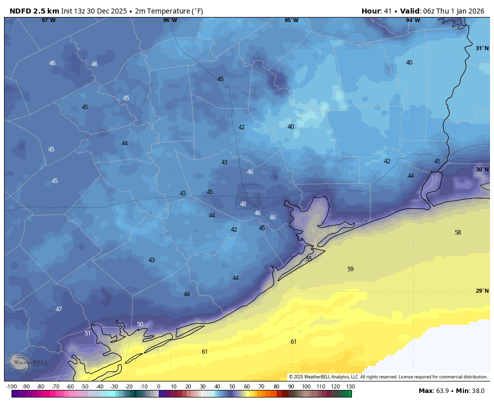 In brief: Houston is quite chilly this morning, and we’re dropping down another notch tonight. But following this we’ll be solidly on a warming trend heading into the new year. This weekend looks quite pleasant. Also, we take a peek at what weather might be like for the Houston Marathon.