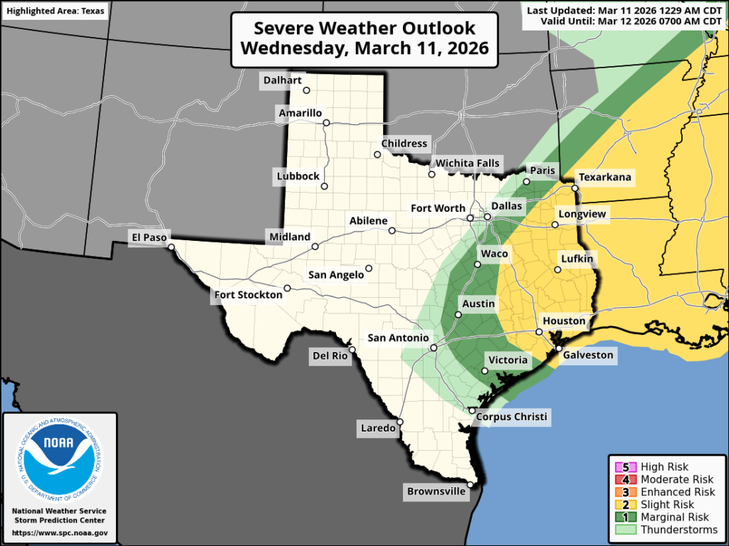 Notably, there is also the threat of severe weather with some of these storms. Although conditions will be most favorable along and north of Interstate 10, we cannot rule out damaging winds, hail, and possibly even a tornado throughout the Houston area today. Please be weather aware this afternoon if you are out and about, and check the radar before hitting the road. Not everyone will see inclement weather, but where severe thunderstorms do develop conditions could deteriorate quickly. The majority of storms should have exited the area by or before sunset.