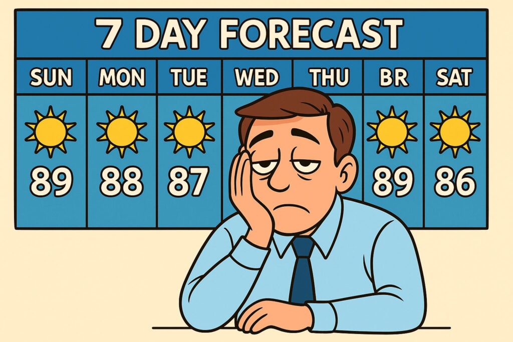In brief: Houston’s weather has been largely unchanging in recent weeks, but that pattern is about to break. We expect widespread rain showers this weekend, and this will be our best chance of denting Houston’s emerging drought in a long time. We also are looking at the likelihood of fall-like weather later next week.