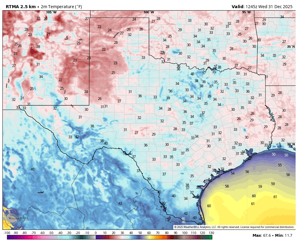 Good morning, everyone. I hope you celebrate a safe and fun New Year’s Eve. In terms of weather, there’s not too much to worry about, which is a nice change from the high winds observed Monday (gusts to 40 mph and higher) and this morning’s light freeze across much of the region. Rather, we will see calm conditions today, tonight, and into the new year. Our mild and calm weather will persist into the middle of next week when things could turn a bit more turbulent. Given the tranquil conditions ahead, I feel comfortable in taking the New Year holiday off, so look for our next update on Friday morning. Happy New Year!