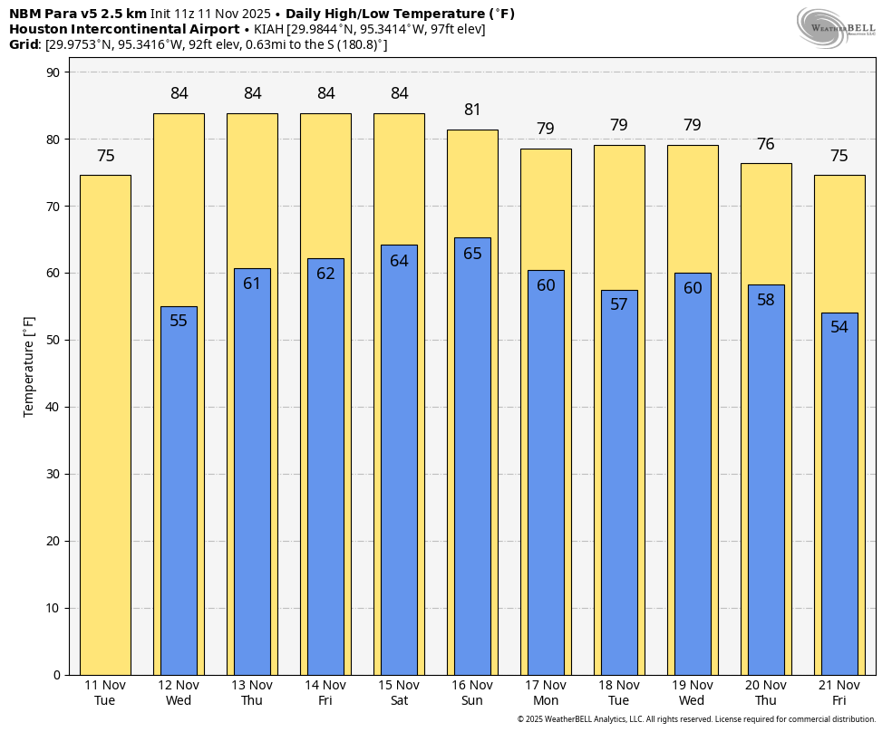 It’s possible that a weak front does make it by Tuesday or so, but we probably will have to wait until later in the week (in the Nov. 20-21 range) for something a little stronger. The bottom line is that, at some point next week, I’m fairly confident we’ll see some pretty healthy rain chances and cooler weather. But before then we’re going to have a goodly string of 80-degree days.