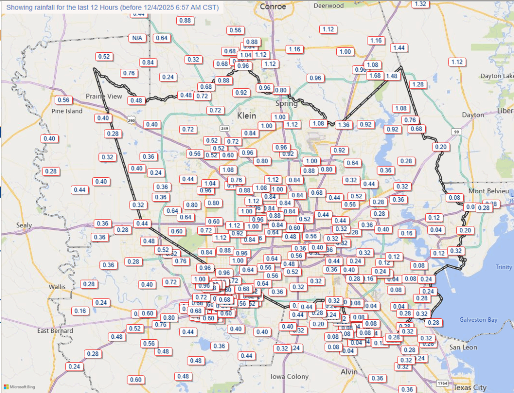 From Wednesday evening through the early hours this morning much of the Houston region has picked up 0.5 to 1.5 inches of rain due to a combination of increased atmospheric moisture and a front that has pushed in. For many locations (especially inland of Interstate 10) rain chances will be below 50 percent during the daytime today. For the most part, any developing showers should be light to moderate, rather than heavy.