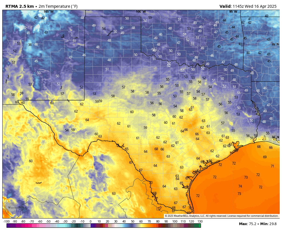 Temperatures this morning are in the low- to mid-60s across Houston and even cooler to the northeast. Although this is not chilly by any means, it is likely to be the coolest weather the region sees through the weekend as we enter a warmer and more humid pattern after today. Expect highs today in the lower 80s for most locations, with mostly sunny skies. Winds will come from the southeast beginning this morning, and by this afternoon they could be gusting up to 20 mph or so, marking the return of a robust and humid offshore flow that will be with us for awhile. Lows tonight will drop to about 70 degrees in Houston.