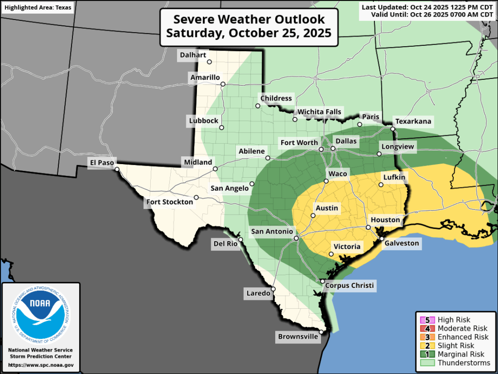 We expect relatively quiet conditions from late morning through the afternoon, aside from the potential for some sporadic showers. However as a weak front approaches, we should see a second squall line develop later on Saturday evening. The timing is still a little fuzzy, but these storms could impact the College Station area during the evening hours and then drop into Houston in the 10 pm to 2 am time frame. So if you have Saturday night plans, you’ll want to keep an eye on the radar. After this weather clears we should see calm conditions on Sunday, and clearing skies.