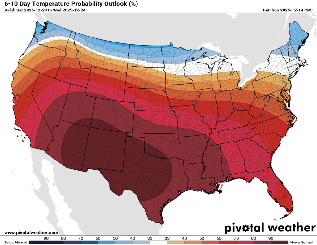 This will be a short-lived front, but it will make things feel seasonal on Friday. I’d expect morning lows in the vicinity of 50 degrees, followed by a sunny day in the 60s. Lows on Friday night should, once again, drop to around 50 degrees. This will likely be our final visitation of winter-like weather until after the Christmas holiday.