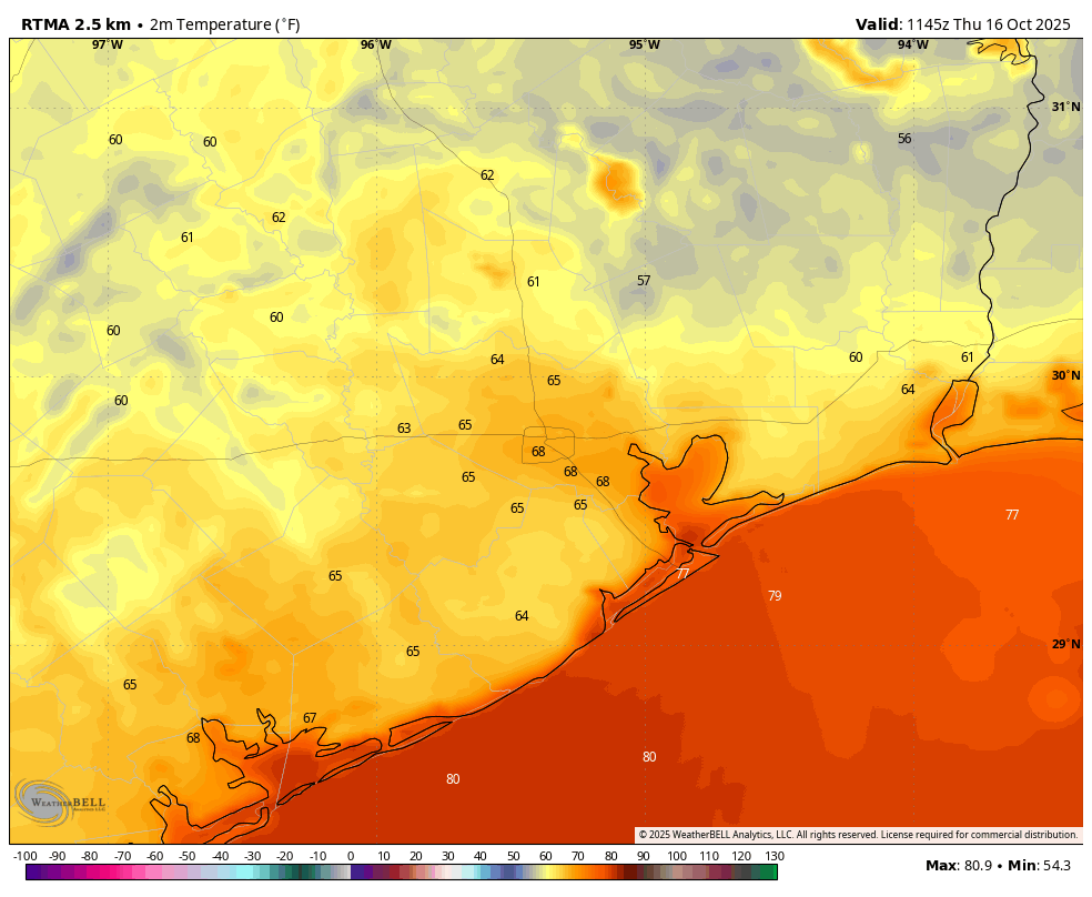 Who knows. I think the front on Sunday will wash out pretty quickly. But then we might see another one on Tuesday or Tuesday night. And then maybe a stronger something or other by Thursday or so. The models are flopping around a lot. There also appear to be some rain chances sprinkled in. The upper-level pattern next week does support the sending of a front all the way through Houston later next week, so let’s see what happens. I’ll guarantee you this: If we get a strong cold front, we will comp everyone’s admission to Fall Day. (That’s a joke, just to be clear. Fall Day, like this website, is free and open to everyone).