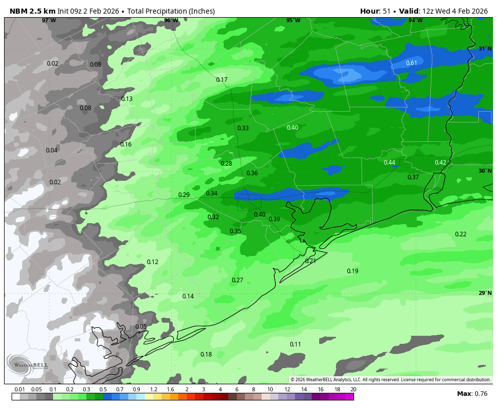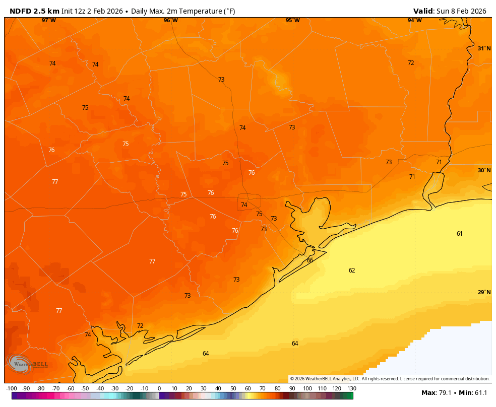 In brief: In today’s post we discuss the rumors about a “snow bomb” hitting Houston around Valentine’s Day (you will be shocked to learn the rumors are not true). We also discuss our moderating temperatures this week, and what looks to be a splendid weekend ahead.