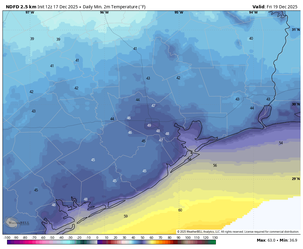 In brief: In today’s post we discuss the scattered showers moving through parts of Houston today, and a warm-up in temperatures before a short-lived front on Thursday night. Beginning Saturday we will see a period of much warmer-than-usual temperatures that will persist through the Christmas holiday.