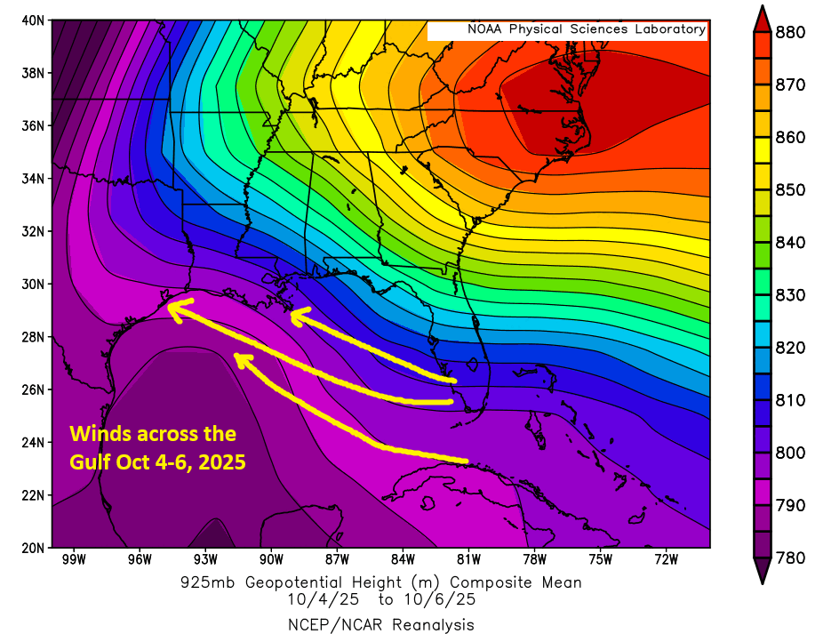The day you’re speaking of was a day of what we call “king tides,” which are the astronomically highest tides of the year. Basically, the predicted highest tides in any year are king tides. We know when those will occur. But this year, we also had what we call a “long fetch” (more fetch than “Mean Girls”), which is to say easterly winds pushing across the length of the Gulf from Florida to Texas, which helped elevate tides a little more. The combination of king tides and the winds helped cause some coastal flooding without a drop of rain.