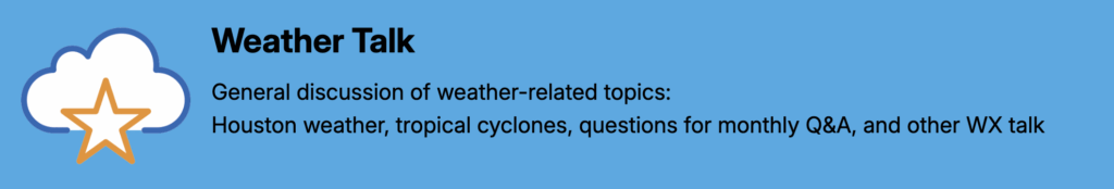 Unlike the Space City Weather or The Eyewall categories, anyone can start a thread in Weather Talk, and discussions will stay open instead of closing in 24 hours.