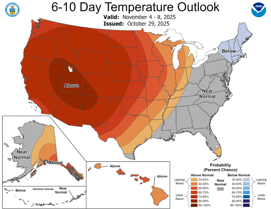 It does look like the first half of November may pick up where October left off last week. I anticipate we will see a front or two sneak in eventually, but in general, warmer and drier than normal weather is expected to dominate the front half of November.