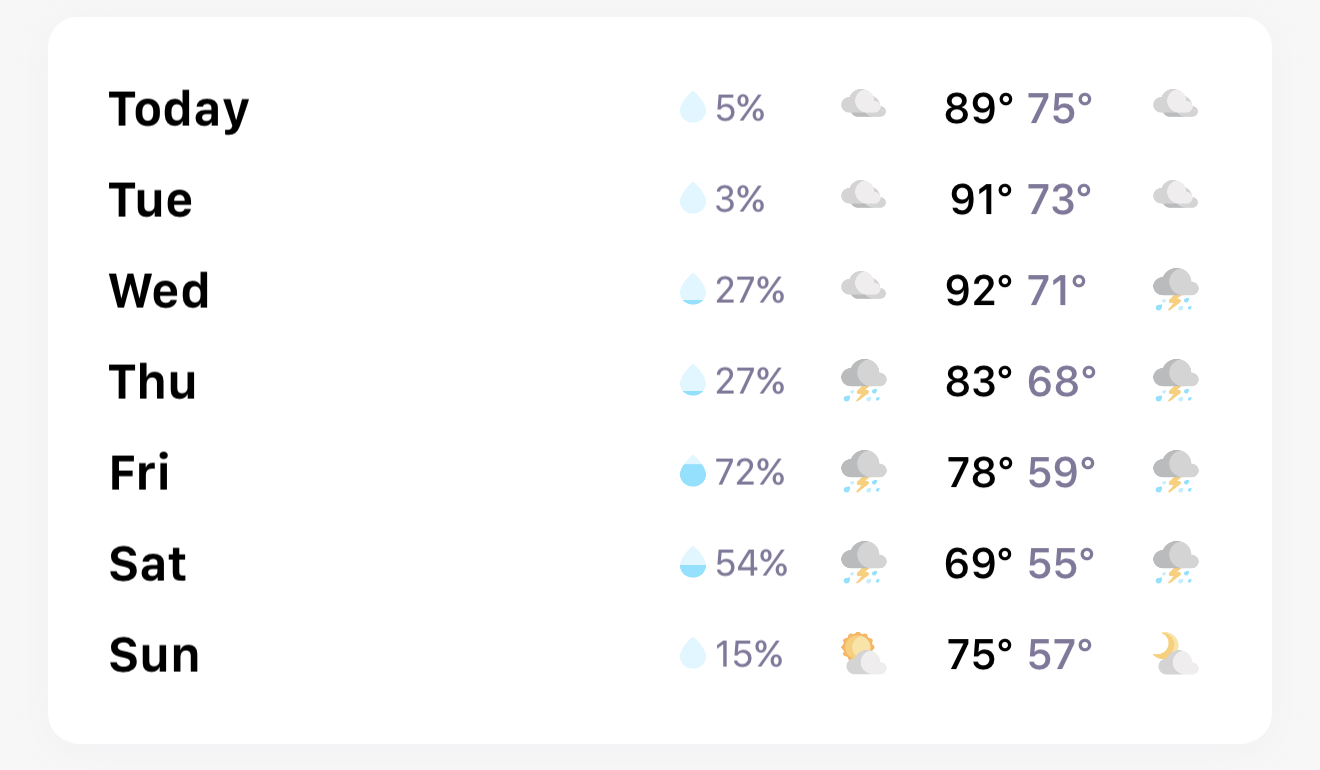But a lot of scientists have also poked holes in this research question, speculating experimental flaws, cognitive biases, etc. The reality is, we just don’t know. But here: I decided to look at Houston’s total rainfall since 2023. 38.72 inches fell on Saturdays and Sundays. 109.18 inches fell on weekdays. About a quarter of our precip since January 2023 has fallen on weekends, which makes up about 29 percent of the week. You could say I’m cherrypicking data here but at least in the last few years, there’s no statistic “weekend effect” in Houston. Still, there’s enough there there in some cases to continue researching the topic!