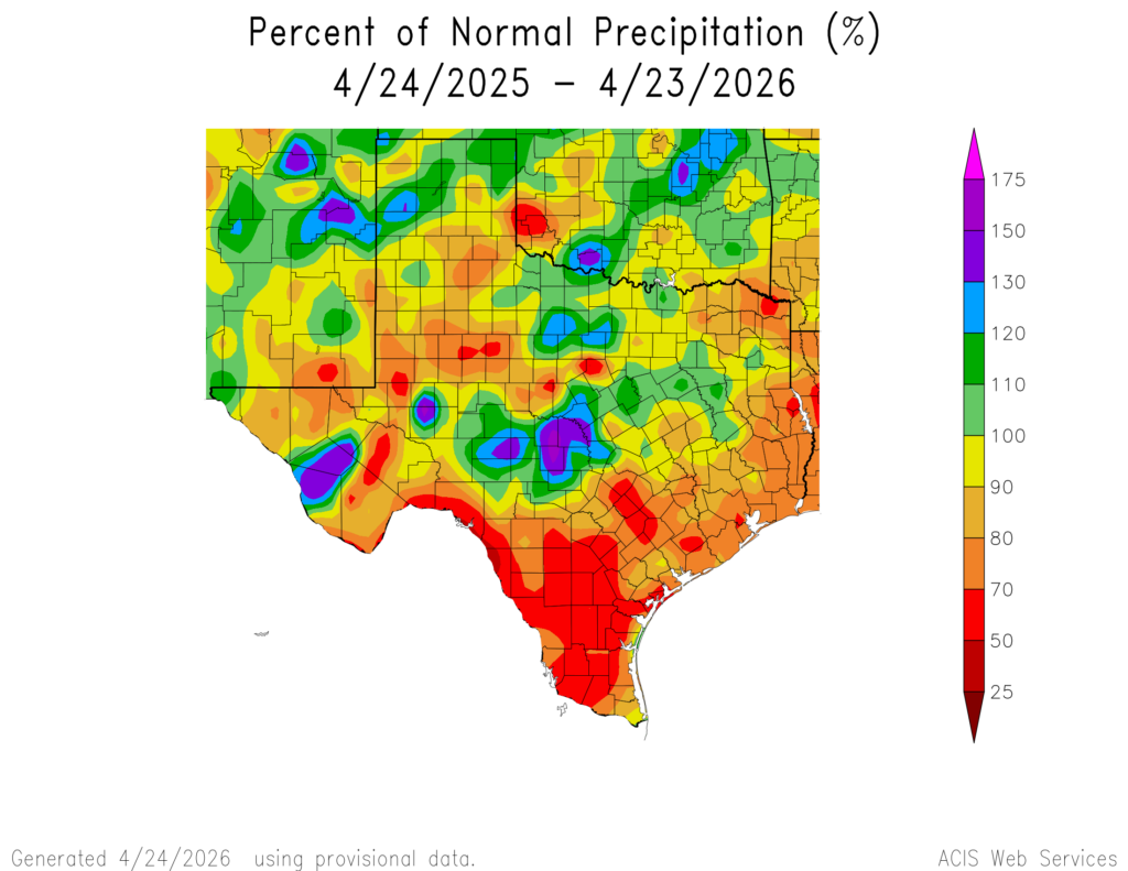 If we look at just the last 12 months, the story is pretty much the same. Areas north of Houston, generally, have gotten a little more rainfall on a “normal” basis compared to southern areas. But it’s not super significant and everyone has gotten a fair amount of precipitation.