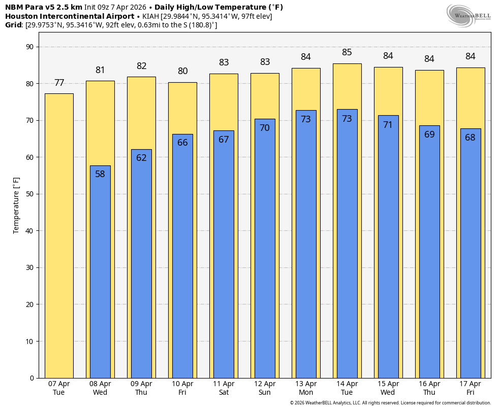 Opinions on the best kind of weather in Houston vary: some like it a hotter, some cooler; some people enjoy sunshine, others are in the mood for a cloudier day. But in my opinion, the best weather comes when we have clear-ish skies, low humidity, light winds, and temperatures in the mid-70s. Today will be one of those days, one of the 10 best weather days of the year. We are going to fall into that combination of ideal conditions for a few hours this afternoon, just before the onshore flow really gets pumping. It’s going to feel beautiful outside, and part of that beauty for me is knowing that it won’t last. A warmer and much more humid spell begins later this week and it will persist at least into the middle of next week. So as ever in Houston, perfection in our weather is fleeting.