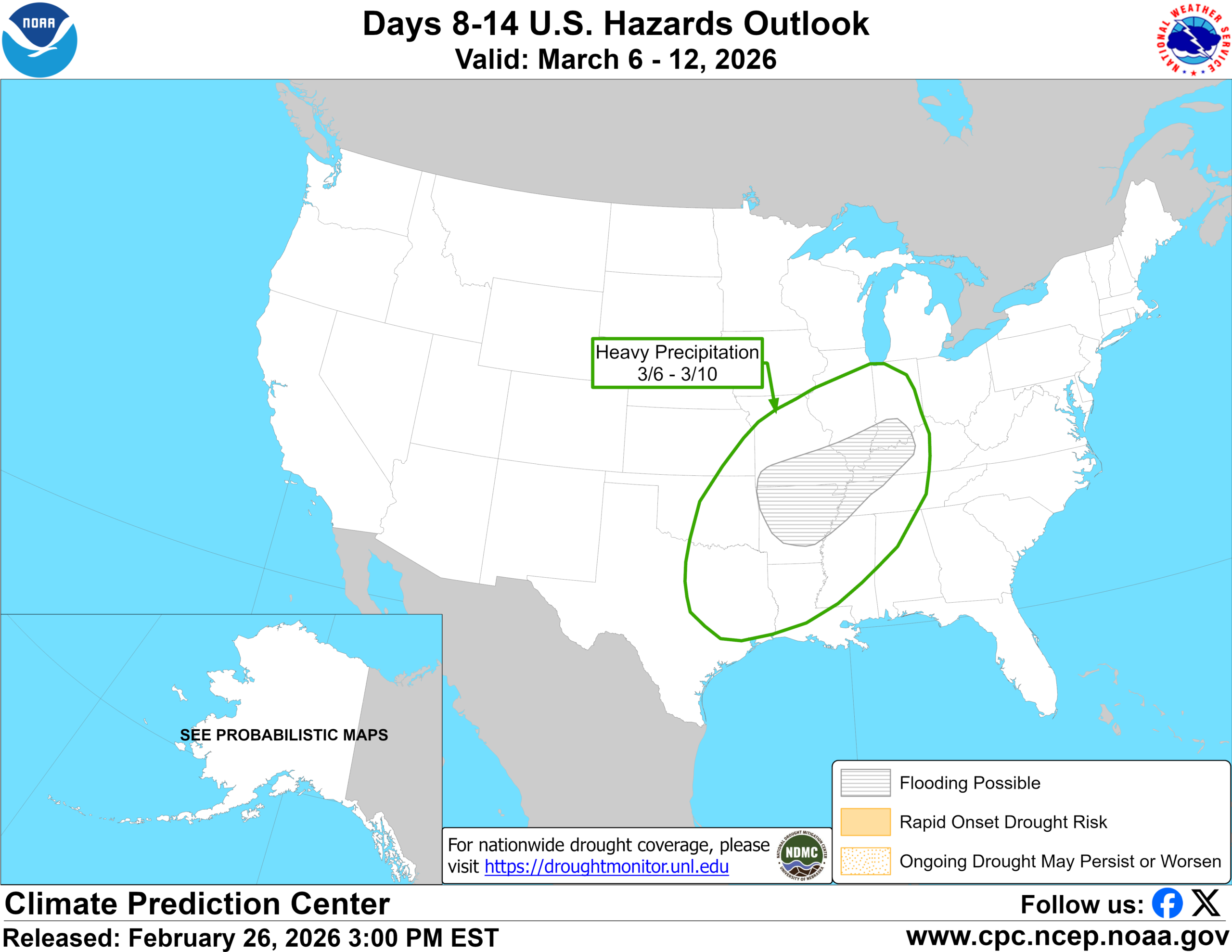 This change in the pattern is expected to have some legs late next week. The Climate Prediction Center’s hazards outlook for days 8 to 14 does highlight East Texas for heavy rain risk on March 6th through the 10th.
