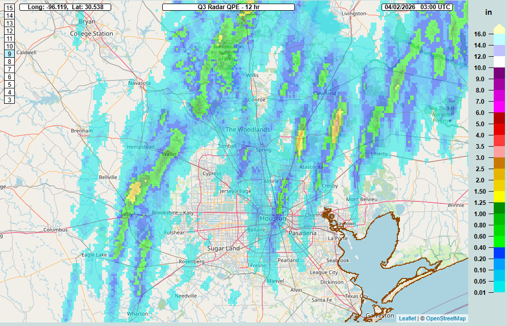 If you were lucky yesterday, you saw some rain. I literally looked outside, said “it’s raining,” and in the time it took me to comprehend that it was raining, it stopped. I’m not exaggerating whatsoever. “Blink and you might miss it” applied. Some folks did do okay though. The Sealy area saw over 0.75″ of rain in spots, including a 1.12″ from a Harris County Flood Control District gauge north of San Felipe. There was also a corridor of heavier rainfall north of Downtown with 1.25″ at a CenterPoint gauge along Tidwell Road and 1.16″ at 59 & 610.